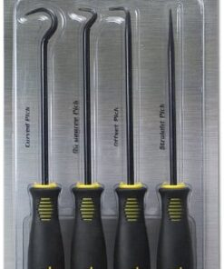 Details: Star Asia Jumbo Bolstered Pick and Hook Set is designed 10.5 inch in length with chrome plated chrome vanadium steel shafts and comfortable TPR grips. It comprises 4 picks including straight, 90 degree, offset, and curved ones..