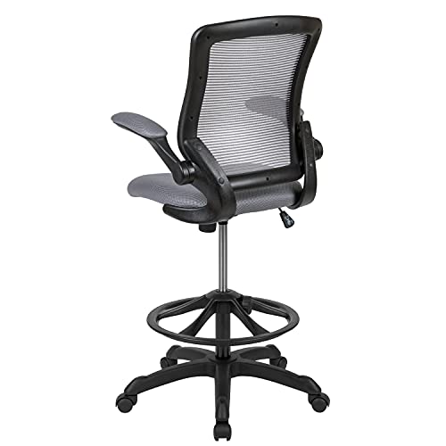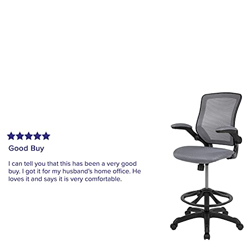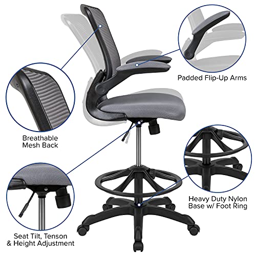 Flash Furniture Mid-Back Dark Gray Mesh Ergonomic Drafting Chair with Adjustable Foot Ring and Flip-Up Arms