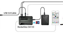 Details: The RocketStor 5411D is the industry’s most versatile USB 3.0 connectivity solution for Mac and PC platforms. It combines the convenience, speed and flexibility of a multi-port USB 3.0 controller, card-reader, SATA drive dock and universal charging station into a single compact device! All-In-One USB 3.0 I/O Solution The RocketStor 5411D is more than just a simple USB drive dock – it is a complete, USB 3.0 I/O connectivity solution! Manage all of your USB peripherals, SD memory cards, audio devices and storage from a single, compact docking station! Each of three USB 3.0 ports provide two functions: a universal USB charging station and a single connection point for all of your USB peripherals including printers, scanners, headsets and input devices. The built-in audio jacks support headsets and recording devices, and an integrated Ethernet port allows you to access USB devices over a local network connection and supports Remote Wake Up via USB. Easily access SATA drives of any generation, size and performance level! An integrated, modular drive bay supports any industry standard 3.5” and 2.5” SATA drive, including today’s fastest 6Gb/s SSD’s and high-capacity 6TB hard drives. The RocketStor 5411D supports any industry standard SATA SSD and hard drive! It fully compatible with any performance level; from SATA 1 to SATA III, supports 3.5” and 2.5” form factors, and can handle disks of any capacity including the latest 6TB and 8TB models. Versatile, Stand-Alone USB charging station The RocketStor 5411D is capable of charging up to 3 USB devices, such a Smart Phones, Tablets, cameras and media players, simultaneously! In addition, the RocketStor 5411D can be used as a standalone charging station – simply leave the unit’s power cable plugged and utilize the dock as an all-purpose charging station!